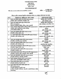প্রজ্ঞাপনে সিআইডির বর্তমান প্রধান ও অতিরিক্ত আইজিপি মো. মতিউর রহমান শেখকে পুলিশ সদর দফতরে, পুলিশ অ্যাকাডেমি সারদার প্রিন্সিপাল (অতিরিক্ত আইজিপি) মো. মাসুদুর রহমান ভূঞাকে পুলিশ সদর দফতরে, অ্যান্টি টেররিজম ইউনিটের প্রধান (অতিরিক্ত আইজিপি) খন্দকার রফিকুল ইসলামকে পুলিশ সদর দফতরে, হাইওয়ে পুলিশের ডিআইজি রেজাউল করিমকে পুলিশ সদর দফতরে, পুলিশ সদর দফতরের ডিআইজি ড. শোয়েব রিয়াজ আলমকে সারদা পুলিশ অ্যাকাডেমিতে, ময়মনসিংহ রেঞ্জের ডিআইজি আশরাফুর রহমানকে পুলিশ সদর দফতরে, পুলিশ সদর দফতরের ডিআইজি আতাউল কিবরিয়াকে ময়মনসিংহ রেঞ্জে, শিল্পাঞ্চল পুলিশের ডিআইজি আশরাফুজ্জামানকে রংপুর পিটিসিতে, সিআইডির ডিআইজি হারুন উর রশীদ হাজারীকে শিল্পাঞ্চল পুলিশে, সারদা পুলিশ অ্যাকাডেমির ডিআইজি রখফার সুলতানা খানমকে হাইওয়ে পুলিশে, রাজশাহী মহানগরীর উপ-কমিশনার সাইফুদ্দীন শাহীনকে কক্সবাজারের পুলিশ সুপার এবং খুলনার রেঞ্জ কার্যালয়ের পুলিশ সুপার তোফায়েল আহমদকে সুনামগঞ্জের পুলিশ সুপার হিসেবে বদলি করা হয়েছে।
